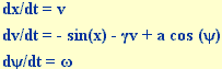 Darin bedeuten x den Winkel der Auslenkung, v die Winkelgeschwindigkeit, die Dämpfung, a die